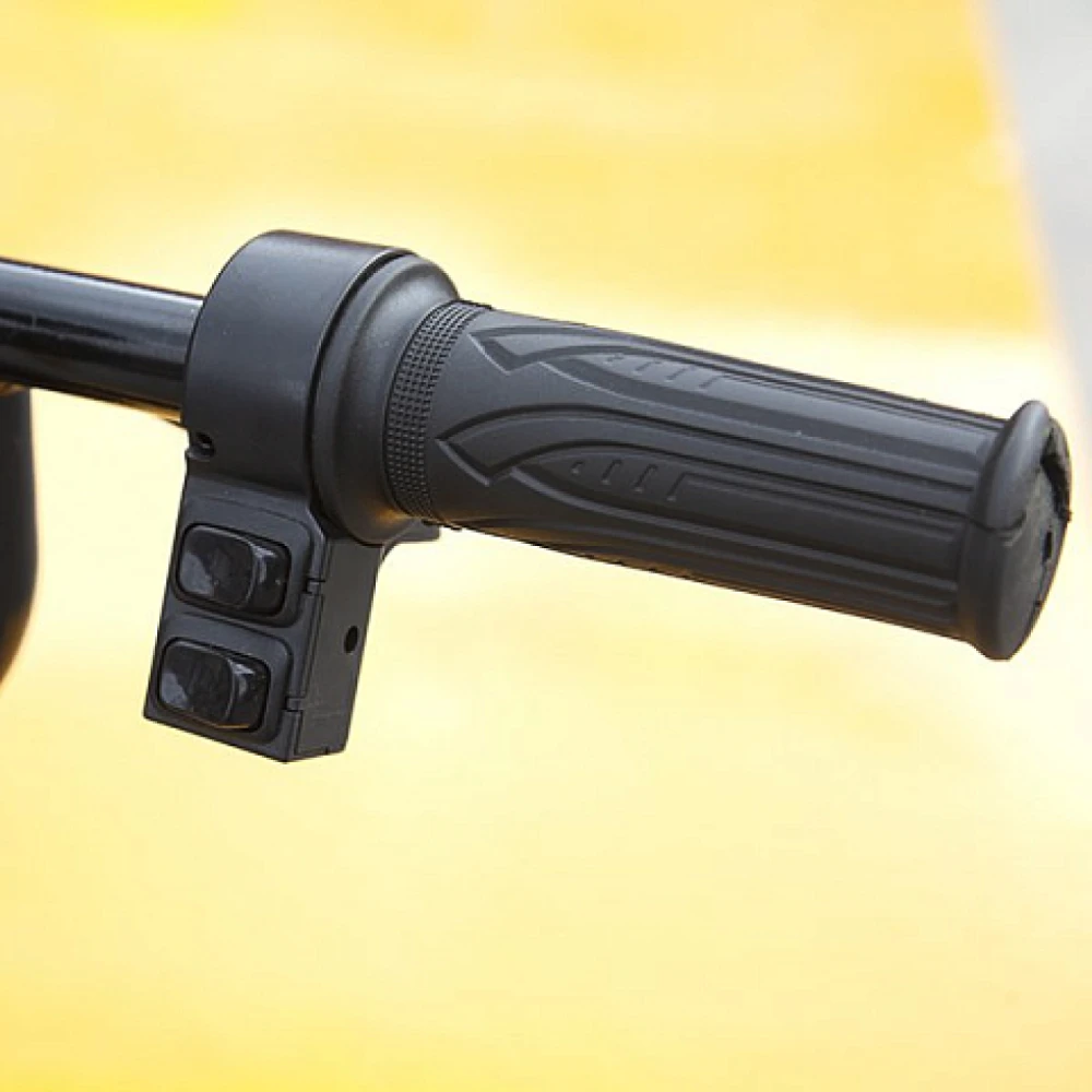 Оснащенность накатистыми надувными 8-дюймовыми колесами и амортизаторами делает движение плавным, практически исключает вибрацию. Торможение проводится посредством задействования барабанного ручного тормоза.