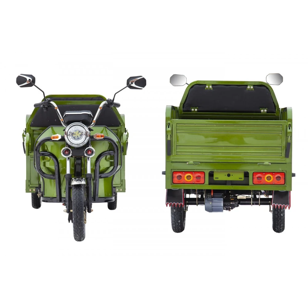 Техника изготовлена из высокопрочного материала, долго сохраняющим первоначальные характеристики при эксплуатации. Специальное покрытие надежно защищает от действия погодных явлений и механических повреждений. Низкий шум при поездке допускает использование грузового электротрицикла в складских помещениях. Техника оснащена двигателем мощностью 800 Вт, свободно развивает скорость 25 км/час, пробег на одном заряде составляет 50 км. Модель надежна и устойчива, производитель исключил возможность случайного опрокидывания. Широкий кузов позволяет перевозить грузы массой до 200 кг.