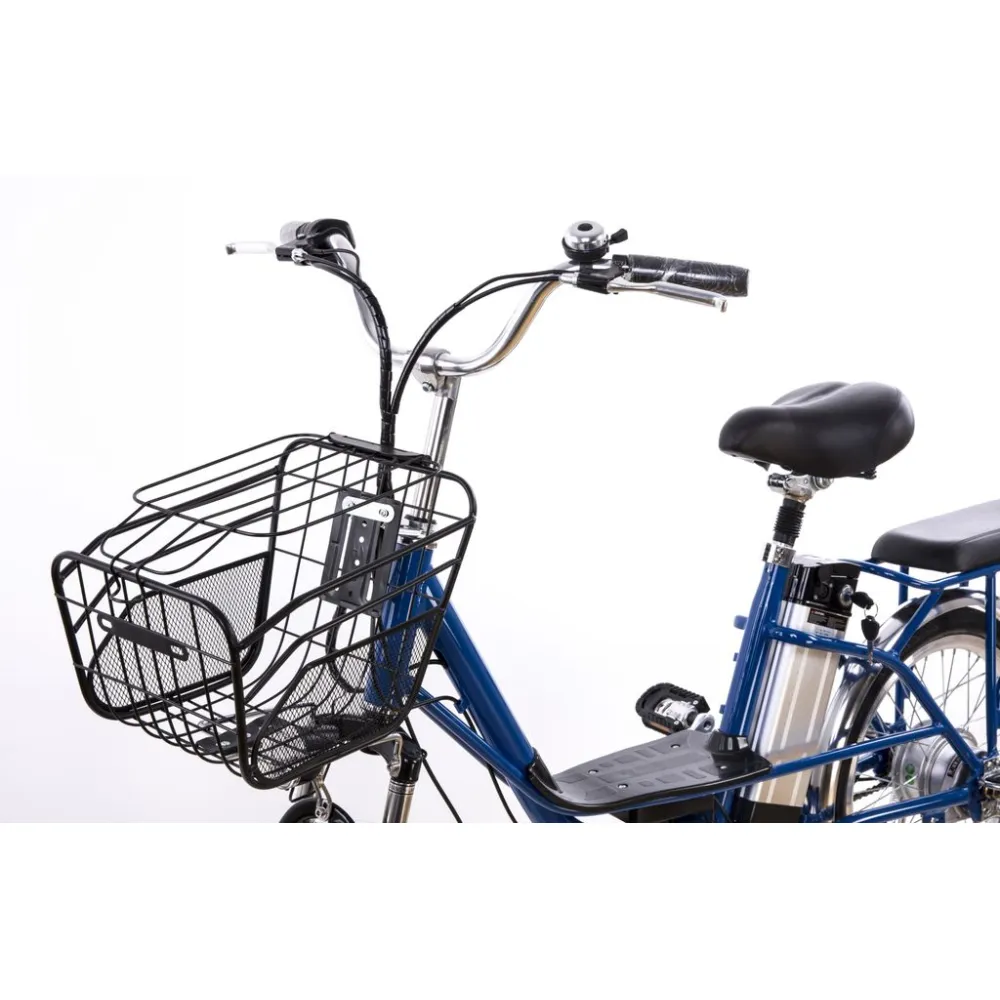 Электровелосипед массой 23 кг выдерживает нагрузку до 130 кг. Прочная алюминиевая рама из авиационного сплава надежная в применении, не деформируется при максимальных весах. АКБ с большим запасом энергии – съемное, может заряжаться на байке и без него. Велосипед имеет отдельное сиденье для пассажира, максимальная грузоподъемность – 40 кг. Наличие комфортной спинки, мягкого сиденья, не утомляет, не оказывает негативного воздействия на позвоночник.