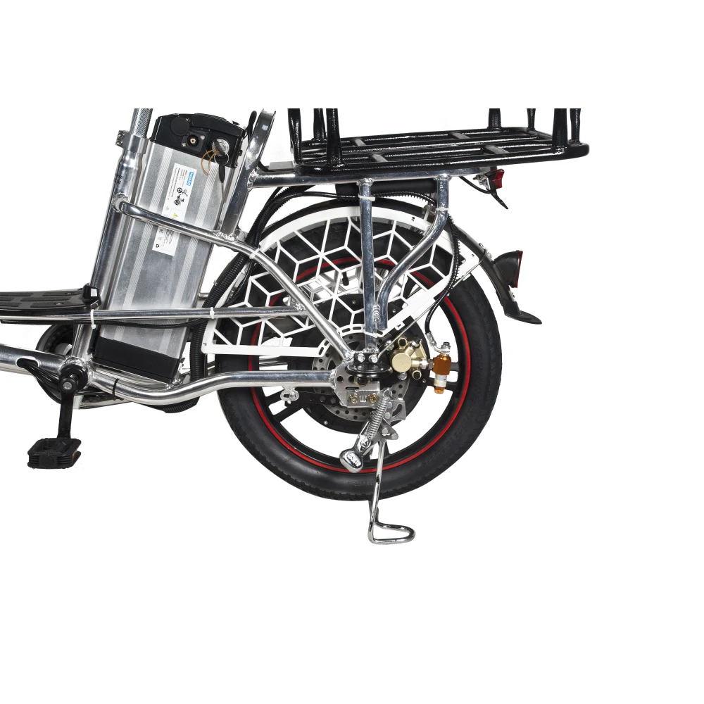 Электровелосипед изготовлен из сверхпрочного алюминия, не теряющего первоначальных характеристик при соблюдении требований производителя. Оснащена мотором мощностью 500 Вт, который в сочетании с емкой АКБ способен развивать скорость до 20-50 км/час и преодолевать до 80 км пути. Гидравлическая тормозная система, профессионализм райдера и надежно сцепляемые с грунтом внедорожные колеса обеспечивают безопасность движения райдера.
