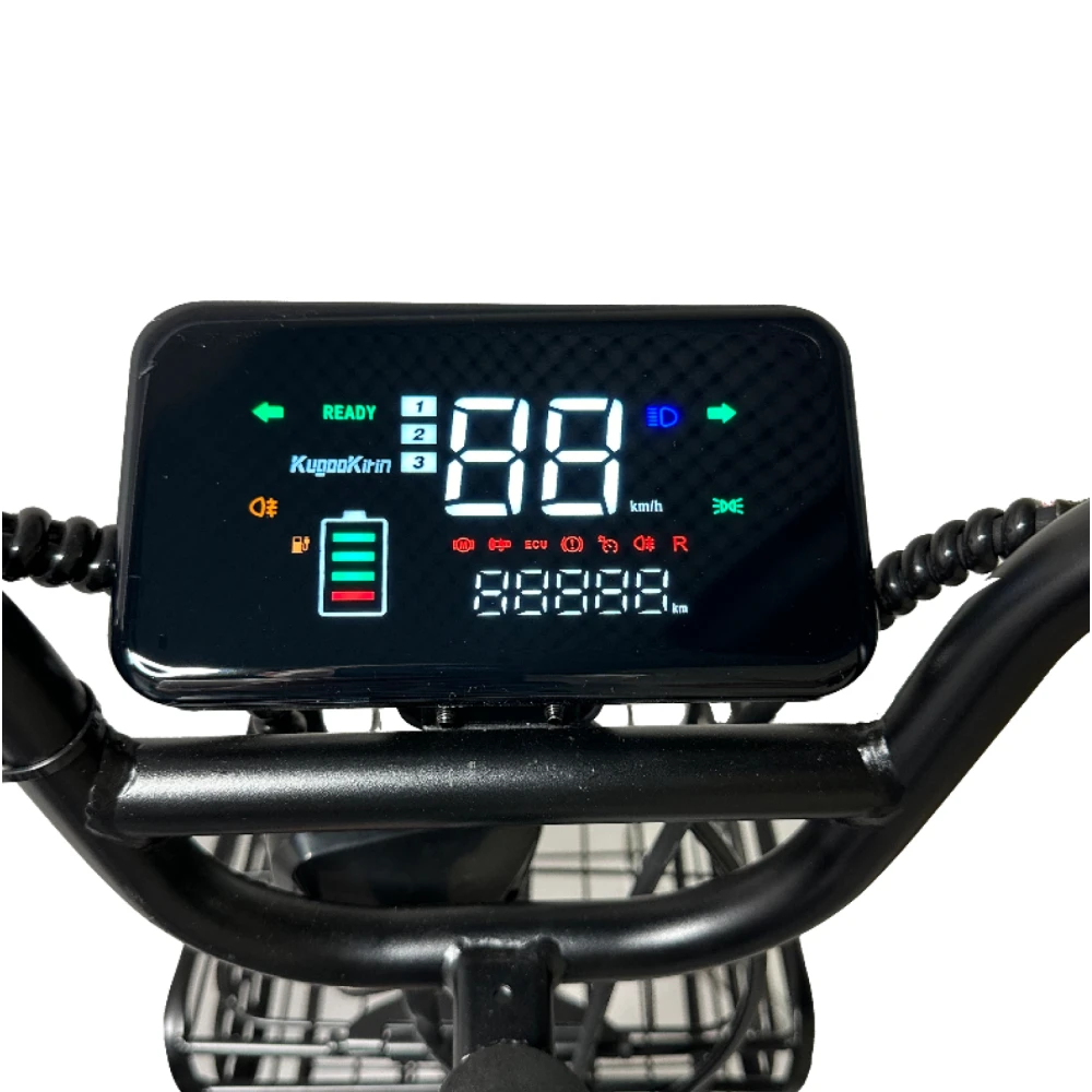 Kugoo Kirin V3 Pro Plus 21Ah — это современный городской электровелосипед, ориентированный на комфорт, удобство и практичность. Модель выделяется лёгкой стальной рамой, высокой грузоподъёмностью и двухподвесной конструкцией, что делает её отличным выбором для городских поездок и перевозки грузов.