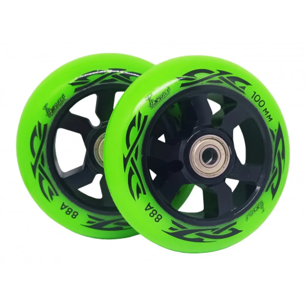Колесо для трюкового самоката Haevner алюминиевое (100мм/ABEC 9) черно-салатовый